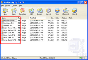 You should now see a list of the files you just selected in the WinZip program. Exit WinZip and open Cachelan.com